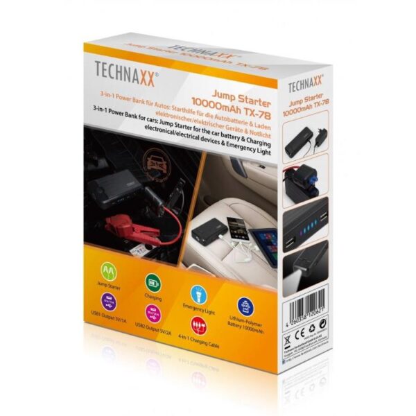 Jump Starter Power Bank 10A con LED 2x USB, TX-78