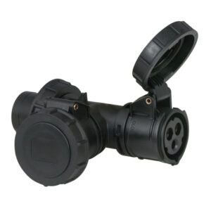 CEE T-Connect 16 A / 240 V – 3P Male/Female 1x ingresso 3P CEE – 1x uscita 3P CEE – 1x uscita con terminale 3P con pressacavo – IP44