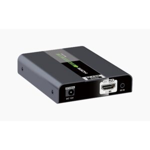 Questo HDMI extender/splitter include un trasmettitore e due ricevitori, estende una sorgente HDMI a 2 schermi HDMI tramite singolo cavo CAT6/6A/7 fino a 60m. La massima risoluzione supportata è di 4Kx2K@60Hz ultra HD, supporta IR pass back, EDID pass through e richiede solo l’alimentatore del trasmettitore in quanto i ricevitori vengono alimentati dal trasmettitore tramite il cavo di rete. Rappresenta la soluzione ideale per esposizioni, video conferenze e fiere etc…Caratteristiche• Distribuisce simultaneamente il segnale proveniente da 1 sorgente HDMI a 2 schermi HDMI tramite un cavo di rete • Supporta una porta HDMI per uscita locale • Compatibile con cavi di rete CAT6/6A/7• La massima distanza di trasmissone supportata è di 60m• La massima risoluzione video supportata 4Kx2K@60Hz ultra HD• Supporta 20Hz ~ 60Hz IR pass back• Supporta EDID• Il trasmettitore può alimentare l’unità ricevente tramite il cavo CAT6 • Plug and play• Installabile a muroSpecifiche tecniche• 1 ingresso HDMI• 2 uscite RJ45 e 1 uscita HDMI• HDMI 2.0 compatibile con HDCP 2.2• Risoluzioni supportate: 480i@60Hz, 480p@60Hz, 576i@50Hz, 576p@50Hz, 720p@50/60Hz, 1080i@50/60Hz, 1080p@50/60Hz, 3840×2140@30/60Hz• Supporta distanza fino a 30 m con risoluzione 4Kx2K@60Hz, fino a 50 m con risoluzione 4Kx2K@30Hz, fino a 60 m con risoluzione 1080p@60Hz• Supporta risoluzione fino a 4Kx2K@60Hz ultra HD• Segnale IR: supporta dispositive IR 20-60KHz• EDID: supporta funzione di configurazione EDID • Temperatura d’esercizio: 0°C – 60°C• Temperatura di stoccaggio: -20°C – 70°C• Alimentazione: Può essere alimentato dal cavo di rete. Solamente per il trasmetTitore è necessario l’alimentatore DC12V/2A• Consumo: Trasmettitore < 12W / Ricevitore < 6W• Dimensioni: Trasmettitore 161.6 x 85.31 x 31.0 mm / Ricevitore 101.1 x 81.6 x 20.6 mm• Colore: neroContenuto della confezione• Trasmettitore x 1pz• Ricevitore x 2pz• Alimentatore DC12V/2A x 1pz • Cavo di estensione IR Blaster x 1pz• Cavo di estensione ricevitore IR x 2pz• Manuale d’istruzione x 1pz