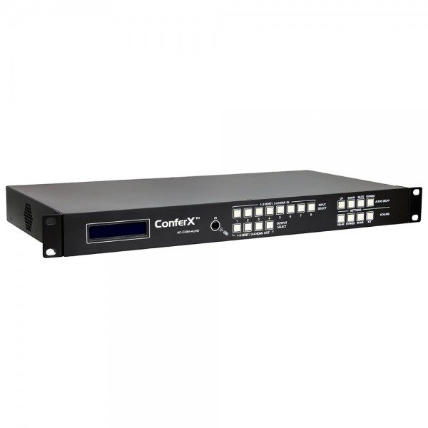 La matrice ConferX 8×4 è la soluzione ideale per qualsiasi sala conferenze, aula o meeting room. Questo switch 4K permette di indirizzare una qualsiasi delle otto sorgenti verso le porte di output HDBaseT e HDMI. Ognuna di queste uscite è completamente indipendente dall’altra, di conseguenza è anche possibile visualizzare contemporaneamente due sorgenti. Questo prodotto integra anche ingressi audio separati che permettono di integrare nella catena un microfono ed un eventuale interfono (o altro ingresso di linea).