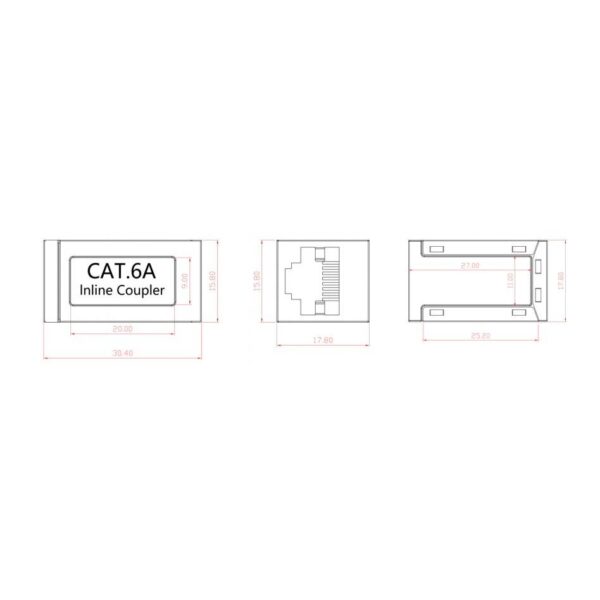• Accoppiatore Cat6A 10GE RJ45 500MHz• 2 x RJ45 femmina/femmina; collegamento pin-to-pin• Schermato, alloggiamento metallico • Contatti doratiContenuto della confezione• Accoppiatore Cat6A 10GE RJ45 500MHz