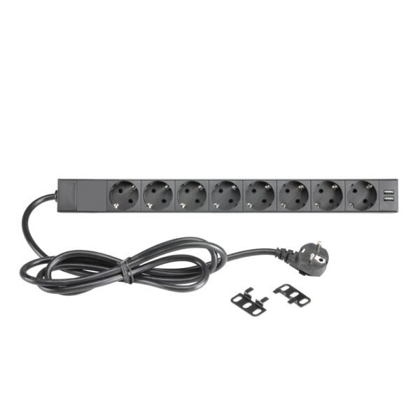 Adam Hall 19″ Parts 87471 USB – Ciabatta da 19” a 8 prese con interruttore e 2 prese di ricarica USB