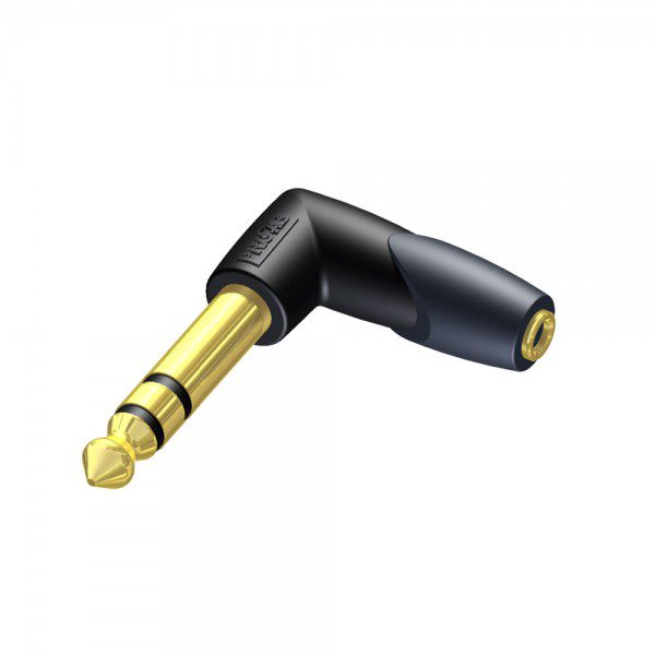 CLP205 è un adattatore da jack 3.5 mm femmina a jack 6.3 mm maschio con un angolo a 90° per ridurre la pressione sul cavo del dispositivo connesso.