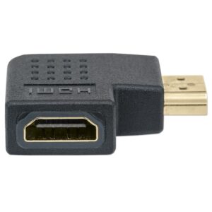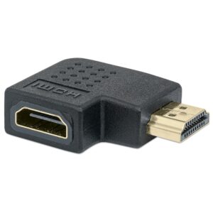 • Connette un cavo HDMI a un cavo o un monitor HDMI• Supporta risoluzione 4K• Conveniente angolo di 90° verso sinistra per un collegamento semplice anche in situazioni con poco spazio disponibile• Contatti placcati oro per una migliore prestazione• Indicato per l’uso con cavi HDMI ManhattanStandard e certificazioni• RoHS2• ISO 9002Informazioni generali:• Larghezza di banda: 10.2 Gbps• 340 MHz• Conforme o superiore agli standard HDMI esistenti• Lunghezza: 4 cmConnettori• HDMI A femmina, 19-pin contatti dorati• HDMI A maschio, 19-pin contatti doratiInformazioni elettriche:• Current rating: 0.5 ADC• Withstanding voltage: 300 V DC• Resistenza: 5 MΩ• Resistenza conduttiva: 2 OhmsInformazioni generali:• Lunghezza (totale): 42 x 29 x 12 mm• Peso: 10 g• PVC pressofusoContenuto della confezione• Adattatore HDMI Maschio/Femmina 90°
