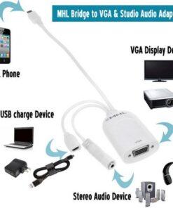 Il convertitore MHL (Mobile High-Definition link)- VGA + Audio è un accessorio realizzato con lo scopo di collegare un Host MHL, come Telefono MHL o Tablet, al display VGA per visualizzare i contenuti su uno schermo in alta definizione HDVT. Questo dispositivo permette di collegare la porta USB micro del telefono con un monitor HDMI in alta definizione HDTV.Compatibile con dispositivi che supportano MHL (es. Samsung Galaxy S3, S4, Note, Sony Xperia,..)ATTENZIONE: alcuni dispositivi potrebbero richiedere adattatore da 5 a 11 pin con codice IADAP MHL-S3 (Vedi tra accessori)Caratteristiche:Cavo MHL di alta qualità, con le seguenti specifiche:• Con un unico cavo si può convertire da Micro USB a VGA + Audio, l’unico presupposto è che il dispositivo supporti lo standard MHL.• Alimentazione tramite Bus USB di tipo micro USB femmina da PC o da alimentatore USB• Converte nativamente il segnale MHL in VGA• Supporta larghezza di banda da 25-75MHz.Specifiche:• Ingresso Micro USB Maschio• Uscita: VGA Femmina• Uscita audio 3,5 femmina• Porta USB Micro femmina per alimentazioneSpecifiche meccaniche:• Dimensioni: (L-W-H) 63x41x22 mm• Lunghezza cavo: 295 mm• Peso: 730 gSpecifiche fisiche:• Temperatura di esercizio 0 c° a +70 c°• Umidità di esercizio 10% a 85 % RH (senza condensa)• Temperatura di stoccaggio -10 c° a +80 c°• Umidità di stoccaggio 5% a 90 % RH (senza condensazione)• Alimentazione richiesta• Conforme alle norme: FCC,CE,ULLa confezione comprende:• Adattatore convertitore MHL VGA con audio* Alimentatore NON incluso