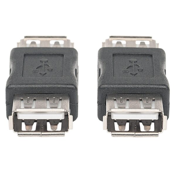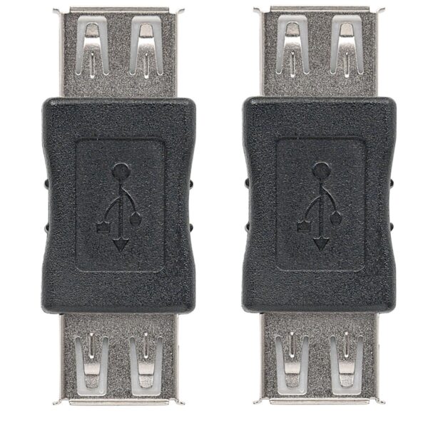 • USB 2.0 Tipo-A femmina a Tipo-A femmina• Cambia il genere della connessione da maschio a femmina oppure accoppia due cavi con connessione maschio• Alimentazione e trasferimento dati USB 2.0 con velocità di trasferimento dati fino a 480 Mbps; retrocompatibile con le versioni USB precedenti• Completamente schermato per ridurre le interferenze elettromagnetiche (EMI) e altre fonti di interferenzaStandards and Certificazioni• UL 20276Informazioni generali• Supporta velocità di trasferimento dati di 480 Mbps• Supporta alimentazione standard di 500mAConnettori• USB tipo-A femmina (2)• Connettori placati oroAdattatore• Schermato• Corrente: 0.5. ADC• Voltaggio: 300 VDC• Resistenza dell’isolamento: 10 MΩ• Resistenza conduttiva: 5 Ω• Connettori in PVC pressofusiCaratteristiche fisiche• Dimensioni: 4.4 x 1.7 x 1.1 cm• Peso: 9 gCaratteristiche ambientali• Temperatura operativa: 0 – 50 °C• Temperatura di stoccaggio: -10 – 50 °C• Umidità (senza condensa): 0 – 96 %Contenuto della confezione• Adattatore USB 2.0 A femmina/A femmina nero