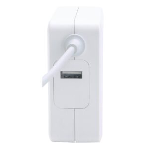 • Soluzione per la ricarica di due dispositivi grazie alla porta USB-C Power Delivery (PD 3.0) e alla porta di ricarica USB-A• Ricarica due differenti dispositivi simultaneamente usando la quantità di potenza ideale• Cavo USB-C con funzione PD fornisce fino a 60 W per ricaricare notebook, laptop, Ultrabook, tablet e altre periferiche alimentate tramite USB-C• La porta USB-A fornisce fino a 5 V / 2.4 A per la ricarica rapida di dispositivi portatili• Protezione contro sovraccarico, sovracorrente e surriscaldamento• Design compatto, portatile ed elegante ideale anche in viaggioStandard e certificazioni• USB 2.0• PD 3.0• FCC• UL• CE• RoHS• WEEEConnessioni• Un cavo con connessione USB-C con Power Delivery (PD 3.0)• Una porta USB-AInformazioni generali• Ingresso AC: 100 – 240 V; 50 – 60 Hz• Uscita USB-C: 5 – 20 V; massimo 3 A; 60 W• Voltaggio / settaggio della corrente (massimo): – USB-C: – 5 V / 3 A – 9 V / 3 A – 12 V / 3 A – 15 V / 3 A – 19 V / 3 A – 20 V / 3 A – USB-A: – 5 V / 2.4 ACaratteristiche entrata:• Tensione nominale AC: 100 – 240 V• Intervallo di frequenza: 50 – 60 Hz (±1 Hz)• Corrente: ≤ 1 A a 100 VAC 60 HZCaratteristiche uscita:• Tensione nominale: 5/9/12/15/19/20 V• Corrente: 3 A massimo (con tensione costante)• Intervallo di potenza: 60 watt massimo• Tensione di superamento: ≤ 5%Caratteristiche di protezione:• Cortocircuito (SCP) con modalità di ripristino automatico• Sovratensione (OVP) con modalità di ripristino automatico• Sovracorrente (OCP) – limite di corrente: 150% (max)• Surriscaldamento (OTP)Caratteristiche fisiche• Dimensioni: 7 x 7 x 3 cm• Peso: 0.22 kg• Alloggiamento: plasticaInformazioni ambientali• Temperatura d’esercizio: 0 – 30°C• Temperatura di stoccaggio: -20 – 65°C• Umidità (senza condensa): 10 – 90 %Contenuto della confezione• Caricatore da muro con connettore USB-C Power Delivery – 60 W• Manuale utente