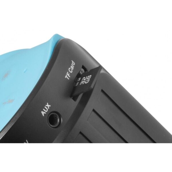 • Altoparlante stereo Bluetooth V4.0 con trasferimento fino a 10m• Permette di telefonare senza fili tramite Bluetooth (funzione vivavoce)• 6 diversi effetti di luce selezionabili• Ingresso AUX-IN, ideale per il trasferimento di musica mobile• Supporta schede MicroSD fino a 32 GB• Altoparlanti integrati 2x audio stereo da 4 W• La batteria da 2000 mAh garantisce 5-8 ore di divertimento musicale• Supporta telefoni cellulari / smartphone, PC / tablet, MP3, ecc.• Ideale per l’uso a casa, alle feste o durante i viaggi• Design maneggevole e alla modaSpecifiche tecniche• 5 funzioni: Bluetooth, AUX-IN, Hands-free, MicroSD card (fino a 32 GB), LED• SNR