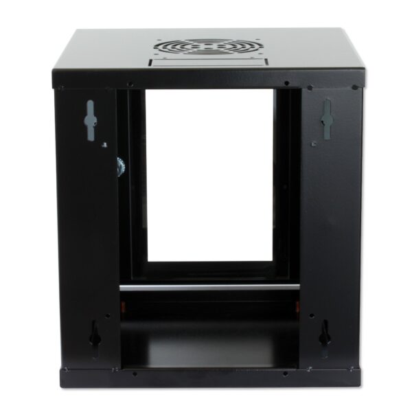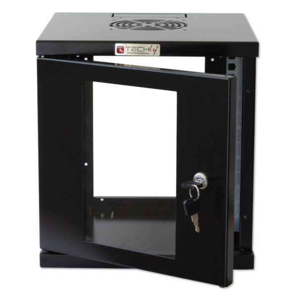 • Armadio a muro a sezione unica 10′ 6 unità per piccole reti • Robusta struttura saldata in acciaio laminato a freddo • Porta in vetro temprato da 5 mm, facilmente removibile e reversibile, angolo di apertura di 230°, chiusura con chiave• Pannelli laterali ciechi fissi• Predisposizione per ingresso cavi sulla base e sul tetto tramite profili pre-tranciati (110 x 40 mm) • Predisposizione per l’installazione di una ventole da 120 mm• Una coppia di montanti 10′ da 1.5 mm, regolabili in profondità (massima profondità utile 250 mm, 20 mm spazio disponibile tra montante e porta con montante completamente avanzato) • Portata statica: 30 kg• Fornito in dotazione kit di montaggio di viti e dadi• Include coppia di chiavi• Colore RAL 9005 (nero)• Dimensioni: 320x300x300 mm (AxLxP)