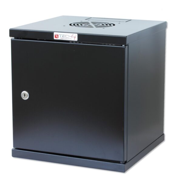 • Armadio a muro a sezione unica 10′ 6 unità per piccole reti • Robusta struttura saldata in acciaio laminato a freddo • Porta cieca facilmente removibile e reversibile, angolo di apertura di 230°, chiusura con chiave• Pannelli laterali ciechi fissi• Predisposizione per ingresso cavi sulla base e sul tetto tramite profili pre-tranciati (110 x 40 mm) • Predisposizione per l’installazione di una ventole da 120 mm• Una coppia di montanti 10′ da 1.5 mm, regolabili in profondità (massima profondità utile 250 mm, 20 mm spazio disponibile tra montante e porta con montante completamente avanzato) • Portata statica: 30 kg • Fornito in dotazione kit di montaggio di viti e dadi• Include coppia di chiavi• Colore RAL 9005 (nero)• Dimensioni: 320x300x300 mm (AxLxP)