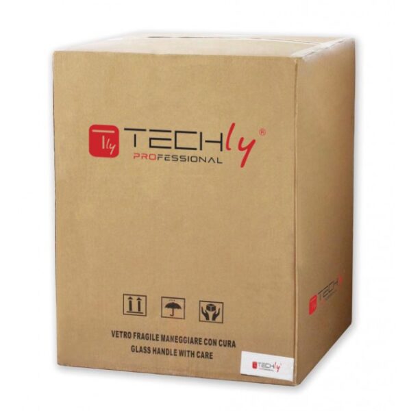 • Armadio rack 15U pensato per supportare apparecchiature audio / video• Struttura stabile e robusta in acciaio per contenere in sicurezza apparati delicati• Pannelli laterali removibili con sgancio rapido e serratura a chiave 1/4 di giro • Pannello posteriore removibile con sgancio rapido e serratura a chiave 1/4 di giro; pannello asportabile dimensioni 480×150 mm per passaggio cavi • Porta frontale in vetro temperato con maniglia e serratura a chiave, reversibile • Include 1 ripiano ventilato da 1U (profondo 380 mm), 1 ripiano ventilato da 2U (profondo 450 mm) e 1 ripiano ventilato da 3U (profondo 450 mm), dotati di clip e cinghie di bloccaggio per fissare gli apparati audio video e garantire il massimo della sicurezza • Include 1 pannello cieco da 1U, 1 pannello cieco da 2U e 1 pannello cieco da 3U per chiudere le unità inutilizzate• Include una barra a L per fissaggio cavi, permette di mantenere ordinato il cablaggio • Coppia montanti anteriori e posteriori regolabili in 4 posizioni dotati di unità numerate per facilitare l’installazione • Predisposizione per installazione ventola di raffreddamento sul tetto e sul fondo per garantire la corretta areazione interna• Predisposizione per ingresso cavi sulla base e sul tetto tramite profili pre-tranciati• Ruote piroettanti e piedini regolabili consentono mobilità e posizionamento stabile • Portata statica: 226,8 kg• Capacità mensola da 1U: 13 kg• Capacità mensola da 2U: 22 kg• Capacità mensola da 3U: 33 kg• Colore RAL 9004 (nero)• Dimensioni: 600x599x767mm (LxPxA)Certificazioni• Conformità alla norma UNI EN ISO 9001:2008Contenuto della confezione• 1x Armadio rack per audio video• 3x Pannelli ciechi (1x1U, 1x2U, 1x3U)• 3x Mensole (1x1U, 1x2U, 1x3U)• 2x Chiavi di chiusura• 3x Clip di bloccaggio (accessorio mensola)• 6x Cinghie di fissaggio (accessorio mensola)• 2x Viti di fissaggio• 4 Piedini di livellamento• 4 Ruote • Manuale d’installazione