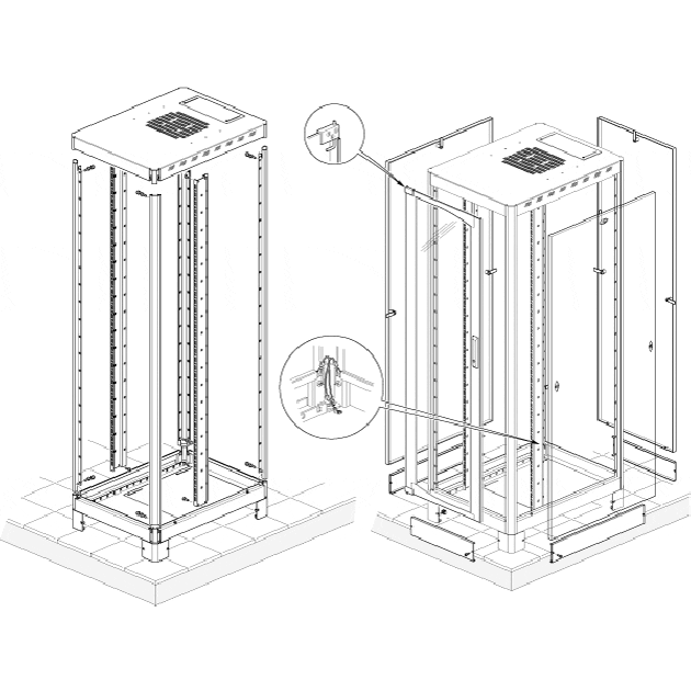 Solido armadio rack a pavimento caratterizzato da una struttura solida e robusta con montanti 19′ da 2 mm di spessore e angolari innovativi da 3 mm di spessore. Alla robustezza della struttura si unisce il design innovativo e moderno, che non trascura la praticità nell’installazione. Infatti, utilizzando una semplice chiave, l’armadio può essere montato e smontato facilmente, permettendo quindi di effettuare un’installazione veloce. Questa rapidità di montaggio è garantita dalle cerniere a sgancio rapido presenti sulla porta anteriore e dalle serrature presenti sui pannelli. Altre caratteristiche fondamentali come la porta reversibile, i pannelli laterali e posteriori amovibili, lo zoccolo con pannelli asportabili, la doppia coppia di montanti numerati, il fondo che a discrezione più essere mantenuto chiuso o aperto per favorire il ricircolo d’aria, rendono, insieme all’ampia gamma di accessori proposti, questi armadi in grado di soddisfare tutte le esigenze di installazione.Caratteristiche• Pannelli e porta facilmente smontabili per facilitare l’installazione delle apparecchiature• Porta anteriore reversibile con vetro temprato conforme alla normative EN UNI 12150-1, con cerniere a sgancio rapido e maniglia con serratura a chiave • Pannelli laterali e posteriore ciechi removibili con serratura a chiave • Tetto predisposto con foratura per sistema di ventilazione e provvisto di ingresso cavi • Fondo predisposto per ingresso cavi e dotato di sportello che chiuso permette di appoggiare apparati come UPS, aperto favorisce l’areazione • Completo di coppia di montanti numerati 19′ anteriori e posteriori• Completo di zoccolo cieco (h. 100 mm) con pannelli asportabili • Capacità di portata statica 500 kg, 220 kg su ruote • Grado di protezione IP20 secondo la norma EN 60529 • Colore: RAL7035 (Grigio) • Dimensioni esterne : (A x L x P) 1556 (1656 mm con zoccolo) x 600 x 600 mmCertificazioni• Certificazione CE secondo la norma EN 62208• Conformità a IEC297; IEC297-1; IEC297-2; IEC297-3; EN61439-1; EN60529; EN12150-1• Conformità alla norma UNI EN ISO 9001:2008