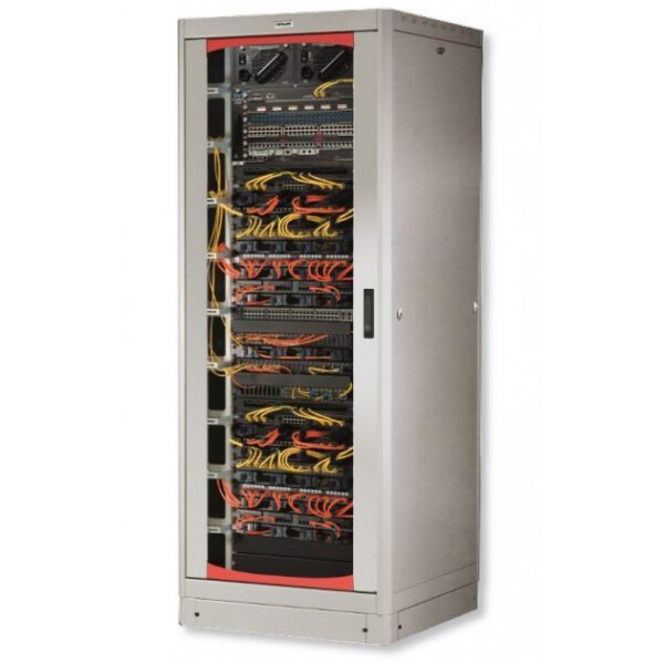 Solido armadio rack a pavimento caratterizzato da una struttura solida e robusta con montanti 19 da 2 mm di spessore e angolari innovativi da 3 mm di spessore. Alla robustezza della struttura si unisce il design innovativo e moderno, che non trascura la praticità nell installazione. Infatti, utilizzando una semplice chiave, l’armadio può essere montato e smontato facilmente, permettendo quindi di effettuare un’installazione veloce. Questa rapidità di montaggio è garantita dalle cerniere a sgancio rapido presenti sulla porta anteriore e dalle serrature a chiave presenti sui pannelli. Altre caratteristiche fondamentali come la porta reversibile, i pannelli laterali e posteriori amovibili, la doppia coppia di montanti numerati, il fondo che a discrezione più essere mantenuto chiuso o aperto per favorire il ricircolo d’aria, rendono, insieme all ampia gamma di accessori proposti, questi armadi in grado di soddisfare tutte le esigenze di installazione.