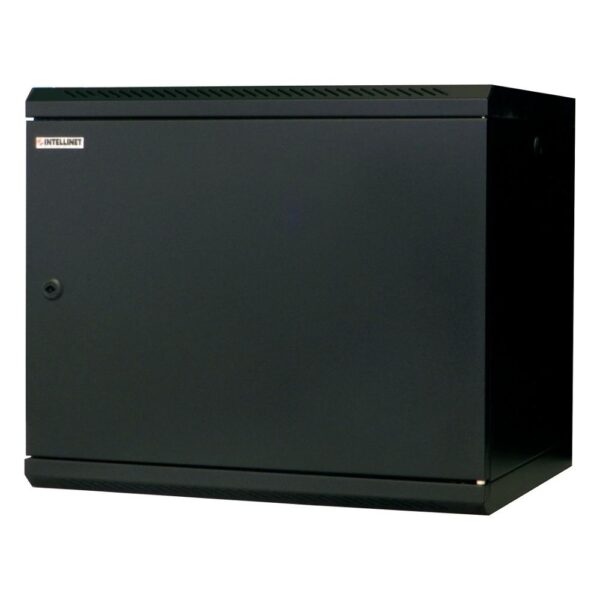 • Armadio a muro a sezione unica 19′ 6 unità per piccole reti • Robusta struttura saldata in acciaio laminato a freddo • Porta frontale cieca, facilmente removibile e reversibile, angolo di apertura di 210°, chiusura a chiave• Pannelli laterali ciechi asportabili con chiusura a chiave• Pannello posteriore cieco• Predisposizione per ingresso cavi sulla base e sul tetto tramite profili pre-tranciati (110 x 40 mm) • Predisposizione per l’installazione di una ventole da 120 mm• Una coppia di montanti 19′ da 1.5 mm regolabili in profondità e una coppia di montanti posteriori fissi • Distanza tra montante posteriore e montante anteriore: 330 mm• Profondità massima di alloggiamento per apparati: 440 mm• La base dell’armadio è provvista di 4 fori con filettatura M10 per predisposizione piedini o ruote• Portata statica: 25 kg• Fornito in dotazione kit di montaggio di viti e dadi• Conformità a EN 12150-1; EIA-310 e IEC 297-3-100; DIN 41494• Conformità alla norma UNI EN ISO 9001:2008• Colore RAL 9005 (nero)• Dimensioni: 372x600x450 mm (AxLxP)
