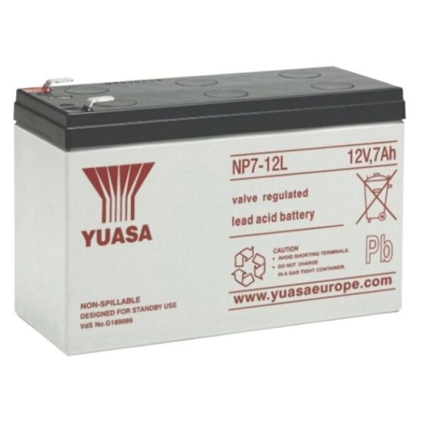 La tecnologia applicata consente un effettivo controllo delle emissioni di gas, consentendone l’uso in condizioni proibitive. La tecnologica ad elettrolita assorbito (AGM) impedisce che vi siano grosse perdite anche in caso di rottura del vaso contenitore. Le piastre al Piombo consentono considerevoli aumenti delle prestazioni sia in tampone che per uso ciclico e danno parallelamente un buon recupero di energia dopo una scarica profonda.Principali campi di applicazione: • Batteria di ricambio per Gruppi di continuità(UPS) • Telecomunicazioni • Allarme antincendio e sistemi di sicurezza • Apparecchi medicali• Applicazioni Solari • Apparecchiature elettroniche di prova • I dispositivi elettronici di misura • Dispositivi di Geofisica • Equipaggiamento marittimo – FerroviaCaratteristiche:• Previsione di durata: 3-5 anni• Ottima efficienza di carica• Specificatamente studiate per l’uso con gruppi di continuità (UPS).• Involucro in resistente ABS• Rispondente alle norme antincendio le norme UL 94 VO, equivalente alla norma EN 60707 • Fabbricato secondo sistema di qualità EN ISO 9001:2000 e EN ISO 14001:2000• Durata estesa a basso livello di auto-scarica circa il 3% al mese a 20 ° C Temperature di utilizzo:• Le batterie possono essere utilizzate con una variazione di temperatura tale da fornire una buona flessibilitàapplicativa.• Carica – 15°C a +50°C• Scarica – 20°C a +60°C• Stoccaggio – 20°C a +50°CSpecifiche tecniche:• Batterie piombo-acido• Tensione nominale: 12V • Capacità: 7AH • Peso: 2,65 kg • Dimensioni: 151 x 65 x 97,5 millimetri • Terminali Tipo: Faston 250 (6,3 millimetri di larghezza)