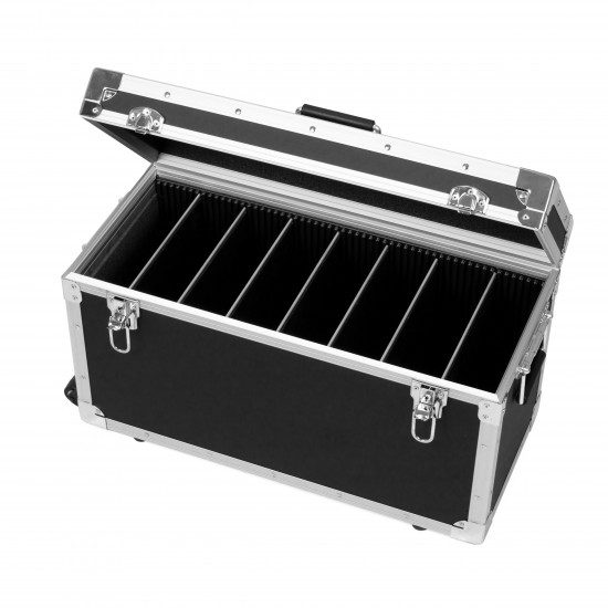 Bauletto porta cataloghi Large con ruote e coperchio; realizzato in ABS con bordi squadrati ed interno dotato di divisori rigidi posizionabili.
