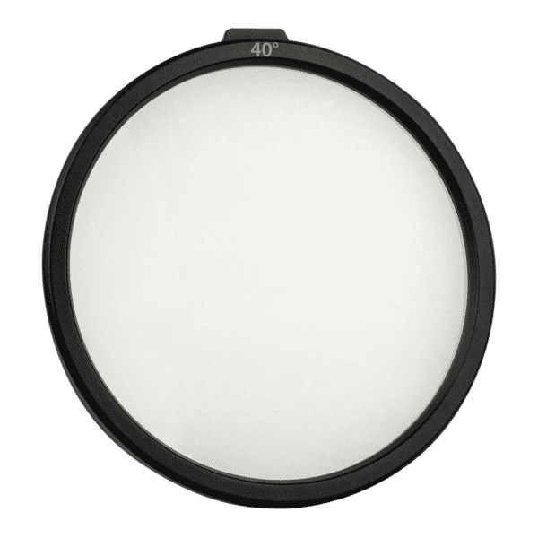 Filtro per Lightset PRO 9/10 RGBM per modificare l’angolo del fascio a 40°. Collegamento all’unità tramite Magtags. I Magtag consentono un montaggio magnetico rapido e preciso senza l’uso di utensili, morsetti o viti.