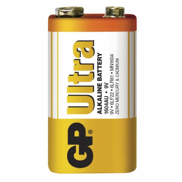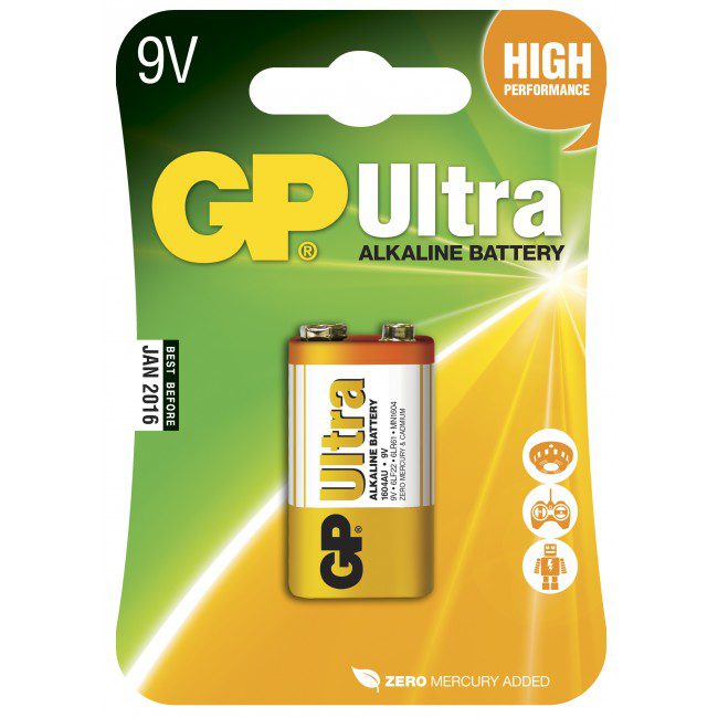 GP Ultra è ideale per un utilizzo quotidiano ed è adatta a tutti gli apparecchi.Perfetta per le periferiche di gioco, mouse senza fili o consolle portatili. Ideale anche per quei giocattoli che hanno un elevato consumo energetico, come per esempio le macchine radiocomandate.• Potenti• Lunga durata – fino a 7 anni• 0% di mercurio aggiuntoCaratteristiche• Batteria ultra alcalina 9V• Formato: 9V – 1604AU/6LF22• Blister da 1 pezzo