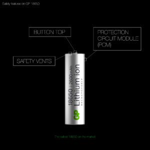 La batteria GP agli ioni di litio 18650 è stata creata tenendo sempre ben presenti le prestazioni e la sicurezza. La PCM integrata e le prese d’aria, la rendono una batteria sicura e affidabile. È una delle poche 18650 con polo a bottone, risultando così ideale per torce e lampade frontali.• Ideale per lampade frontali • Corrente di scarica continua da 3,7V• Circuito di protezione integrato• Dura fino a 300 cicli con l’80% di capacità• Funziona in condizioni meteorologiche estreme (da -20°C a 50°C)• Ricarica completa in 4 ore• Dotata di 7 livelli di protezione• Peso: 50 g• Conforme UN38.3 – Sicurezza del trasporto aereoCaratteristiche• Batteria agli ioni di litio (Li-Ion)• Tensione 3,7V• Modello 18650• Capacità (mAh) 2600