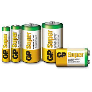 GP Super è una batteria alcalina standard perfetta per la maggior parte dei prodotti con medio-alto assorbimento, come ad esempio giocattoli, orologi da parete e torce elettriche.GP Super offre una gamma completa di batterie alcaline che può essere fornita in confezioni multiple come in singoli blister.Specifiche• Non contengono mercurio o piombo• Perfette per coloro che utilizzano molte batterie• Lunga durata (prima dell’uso) – fino a 7 anni