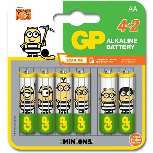 Blister 4+2 Batterie Alcaline AA Stilo GP Minions