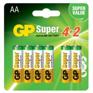 GP Super è una batteria alcalina standard perfetta per la maggior parte dei prodotti con medio-alto assorbimento, come ad esempio giocattoli, orologi da parete e torce elettriche.GP Super offre una gamma completa di batterie alcaline che può essere fornita in confezioni multiple come in singoli blister.Specifiche• Formato batterie: AA stilo• Non contengono mercurio o piombo• Perfette per coloro che utilizzano molte batterie• Lunga durata (prima dell’uso) – fino a 7 anni
