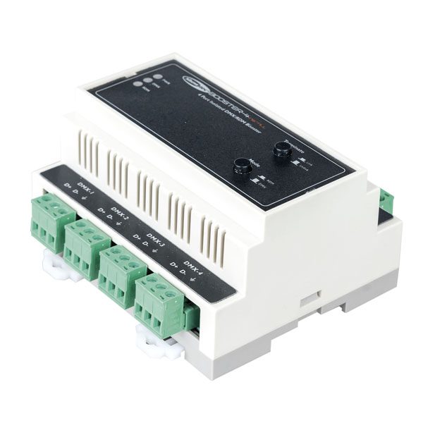 Il Booster-4 Install Showtec è il booster da installazione fissa compatto ideale per voi. Tutte le connessioni sono facilmente collegabili con i terminali Phoenix ad innesto, sia gli ingressi che tutte le uscite sono otticamente isolate per evitare che qualsiasi interferenza possa disturbare il vostro segnale. Il Booster montato su guida DIN distribuisce sia DMX che RDM ed è ideale per progetti di integrazione di sistemi di rete.