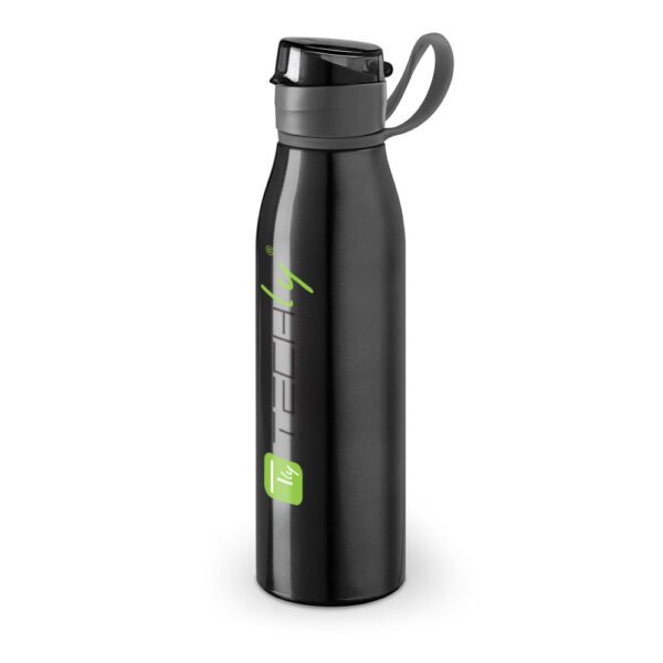 Oltre ad essere elegante, questa borraccia in alluminio è provvista di un tappo che rimane attaccato alla borraccia quando lo aprite per bere, in modo che non possiate perderlo.