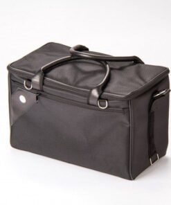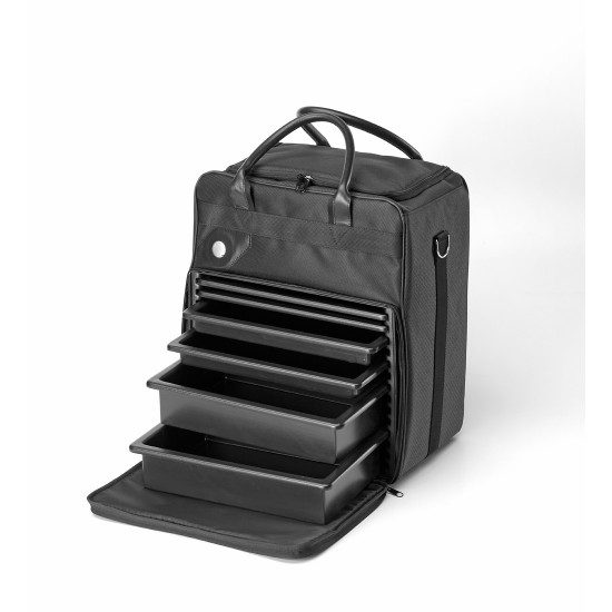 Borsa trucco professionale realizzata in poliestere con inserti in pelle.