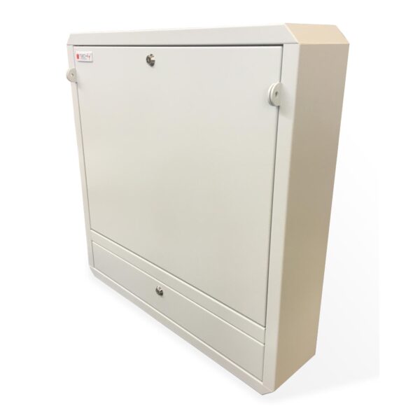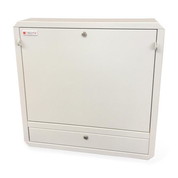 ICRLIM06 è una cassetta di sicurezza da parete per notebook fino a 19′; rappresenta la soluzione ideale per riporre e proteggere il notebook in ambienti scolastici e sale conferenze, grazie anche alla predisposizione per la chiusura del vano superiore con due lucchetti aggiuntivi. Costituisce l’accessorio ideale da affiancare al montaggio delle lavagne interattive (LIM). Il box chiuso permette di custodire in modo sicuro notebook e accessori per la LIM, aperto diventa un pratico piano di appoggio per l’uso del notebook insieme alla LIM. Nel vano inferiore si possono tenere in ordine l’alimentatore e i cavi di collegamento. Caratteristiche• Armadietto di sicurezza a parete per notebook fino a 19′ e accessori per LIM• Con ribaltina a doppia cerniera frizionata 54 x 43 cm servoassistita a gas da due pistoni autofrenanti che ne garantiscono la totale sicurezza• Il ripiano a ribalta funge da appoggio per il notebook ed è dotato di fascia elastica per il fissaggio dell’apparecchiatura prima della chiusura• Vano superiore provvisto di due asole che permettono di aggiungere due lucchetti di chiusura per una maggiore protezione del contenuto• Vano inferiore per alimentatore e alloggio cavi con chiusura a chiave• Ripiano interno per pennarelli, telecomandi e mouse• Con cuscinetti di protezione e sostegno per laptop• Paracolpi in spugna• Dotato di mensolina per mouse o piccoli oggetti• Con predisposizione per montaggio multipresa• Colore grigio RAL7035 bucciato, antigraffio • Si consiglia l’acquisto della multipresa I-CASE M10-4 (non inclusa)Specifiche tecniche• Acciaio verniciato a polveri epossidiche • Spessore 1,5 mm• Colore grigio, RAL 7035• Con sistema di chiusura a chiave standard• Predisposizione per due lucchetti aggiuntivi sul vano superiore (lucchetti non inclusi)• Predisposizione passaggio cavi• Compatibile con computer portatili con monitor fino a 19’Dimensioni• Larghezza 59,6 cm• Altezza 59,6 cm• Profondità con sportello chiuso 12,7 cm• Profondità con sportello aperto 54,5 cm• Profondità con sportello piccolo aperto 18,5 cm• Profondità mensolina interna: 6 cm• Dimensioni ripiano: 54 x 43 cmDimensioni multipresa• Larghezza 26,2 cm• Profondità 6,2 cm• Altezza 4,4 cmContenuto confezione• Box per notebook (Mod. Professional)• 4x chiave per chiusura