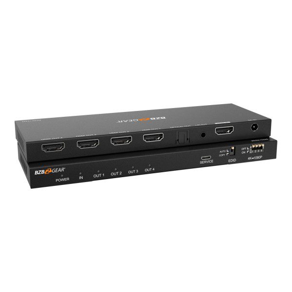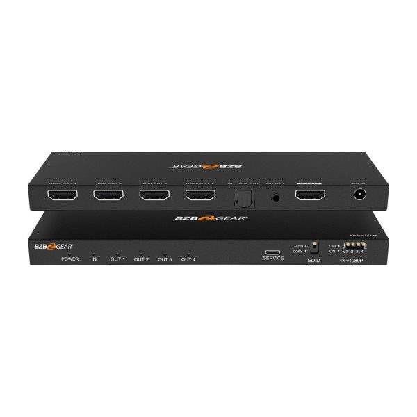 Oltre alle sue capacità video, BG-DA-1X4AS fornisce anche l’estrazione audio tramite uscite ottiche e stereo da 3,5 mm, consentendogli di inviare segnali a sistemi audio esterni. Lo splitter supporta una varietà di formati audio, tra cui LPCM, Dolby Digital/Plus/EX, Dolby True HD, DTS, DTS-EX, DTS-96/24, DTS High Res, DTS-HD Master Audio e DSD, rendendolo una scelta ideale per installazioni audio e video professionali.