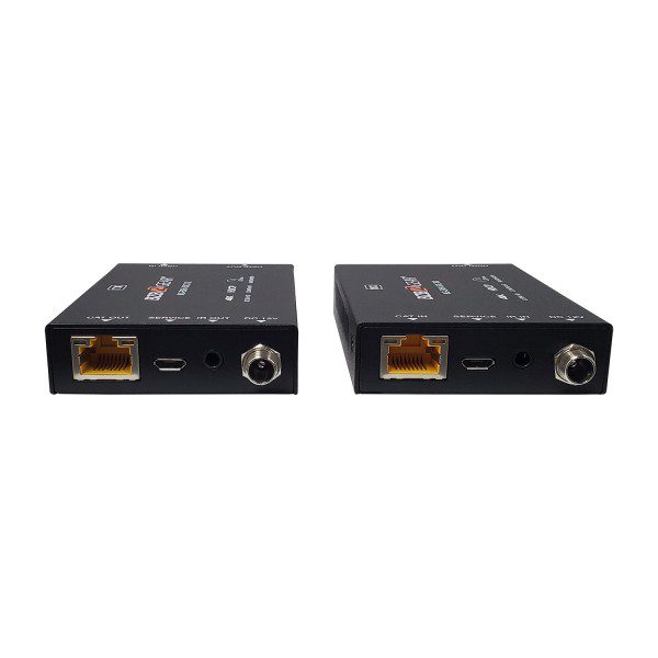 Trasmettitore Ingressi: 1x HDMI Tipo A [19 pin femmina] 1x SERVICE [Micro USB, porta di aggiornamento] Uscite: 1x HDMI Tipo A [19 pin femmina] 1x IR OUT [Mini-jack stereo da 3,5 mm] 1x CAT OUT [RJ45, femmina a 8 pin]