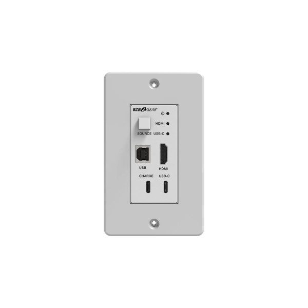 Alloggiato in un’elegante placca da parete standard US one-gang compatibile con le aperture Decora-style, il trasmettitore funge da switcher 2×1 e trasmettitore HDBaseT, supportando ingressi HDMI e USB-C per un’integrazione senza soluzione di continuità con un’ampia gamma di dispositivi AV.