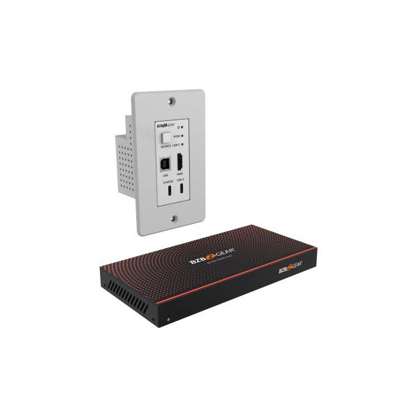 Il BG-EXH-70UWP-W è una soluzione avanzata per la distribuzione e trasmissione di segnali ad alta definizione. Questo kit include un trasmettitore da parete USB-C/HDMI con funzione KVM e un ricevitore HDBaseT-HDMI, offrendo prestazioni eccezionali e versatilità per installazioni AV professionali.