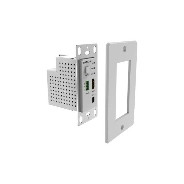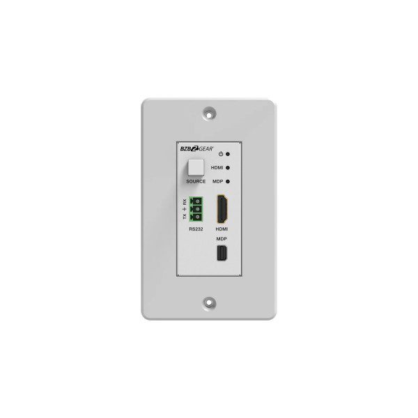 La piastra da muro funge sia da switcher 2×1 che da trasmettitore HDBaseT, supportando ingressi HDMI e DisplayPort (DP). Con il supporto per risoluzioni video fino a 4K2K@50/60Hz 4:4:4, garantisce immagini di eccezionale nitidezza e dettaglio. Inoltre, la trasmissione bidirezionale RS-232 consente il passaggio di segnali di controllo fino a 40m, offrendo una gestione pratica e affidabile.