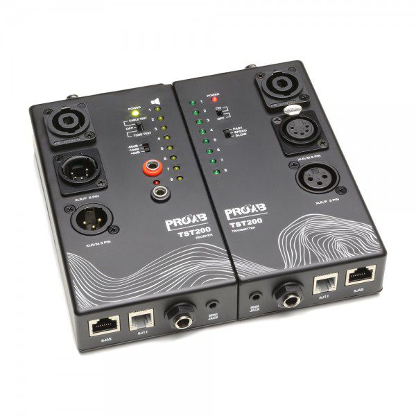 Il nuovo tester multifunzione TST200 è dotato di tutti gli ingressi standard per audio ed elettronica, ad esempio XLR Maschio/Femmina a 3 e 5 poli, jack 3,5 mm, jack 6,3 mm, DIN a 3 e 5 poli, RCA, Speaker (4 poli), RJ45, RJ11, BNC.