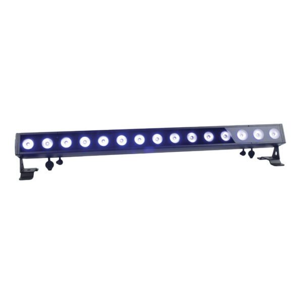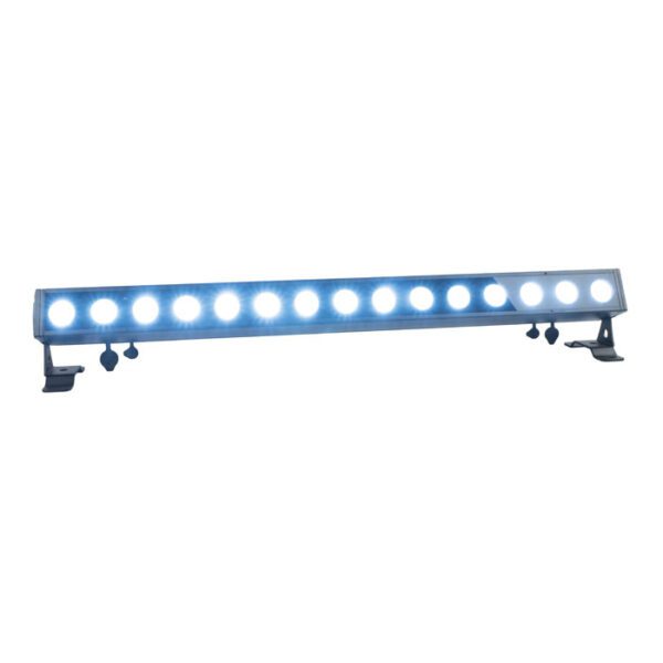 La Showtec Cameleon Bar 15 Q6 Tour è una potente barra LED 15x 10 watt con funzionamento silenzioso senza ventola e con classificazione IP65, idonea per applicazioni interne ed esterne temporanee. È dotata di un’angolazione del fascio verticale da 22° e orizzontale fissa da 33° e di effetti strobo 0-20 Hz e dimmer 0-100%, ed è perfettamente idonea per il mixaggio colori sul palco. La Cameleon Bar 15 Q6 Tour può essere controllata manualmente, tramite DMX, telecomando IR, e master/slave in modalità di funzionamento manuale o automatico e prevede molti programmi integrati disponibili. È dotata di connettori di alimentazione Seetronic Power Pro True con classificazione IP65, compatibili con i principali marchi.