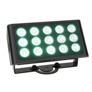 Lo Showtec Cameleon Flood 15 Q4 Tour è un Flood LED 15x 5-watt RGBW con grado di protezione IP65, adatto per location indoor e outdoor (temporanee). Ha un angolo del fascio fisso di 40° e dispone di dimmer 0-100 % ed effetti stroboscopici 0-15 Hz, perfettamente adatti per il color mixing sul palco. Il Cameleon Flood 15 Q4 può essere controllato manualmente, via DMX, Master/Slave e con IR Remote in modalità manuale o automatica con molti programmi integrati disponibili. È dotato di connettori di alimentazione Power Pro True IP65, compatibili con le principali marche. È inclusa una staffa per un facile fissaggio. Un telecomando a infrarossi è disponibile opzionalmente.