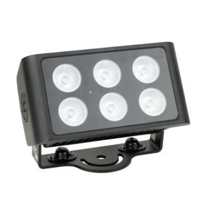 Lo Showtec Cameleon Flood 6 Q6 Tour è un proiettore LED 6x 10 watt RGBWA-UV con classificazione IP65, idoneo per applicazioni interne ed esterne temporanee. È dotato di un’angolazione del fascio fissa da 40° e di effetti strobo 0-20 Hz e dimmer 0-100%, ed è perfettamente idoneo per il mixaggio colori sul palco. Il Cameleon Flood 6 Q6 Tour può essere controllato manualmente, tramite DMX, Master/Slave e telecomando IR, in modalità di funzionamento manuale o automatico e prevede molti programmi integrati disponibili. È dotato di connettori di alimentazione Seetronic Power Pro True con classificazione IP65, compatibili con i principali marchi. Include una staffa che permette un’installazione semplice. Il telecomando a infrarossi è disponibile come optional.