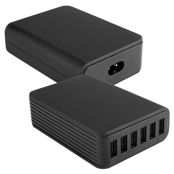 Carica Batterie da Tavolo 6 USB 12A per Smartphone Tablet Nero