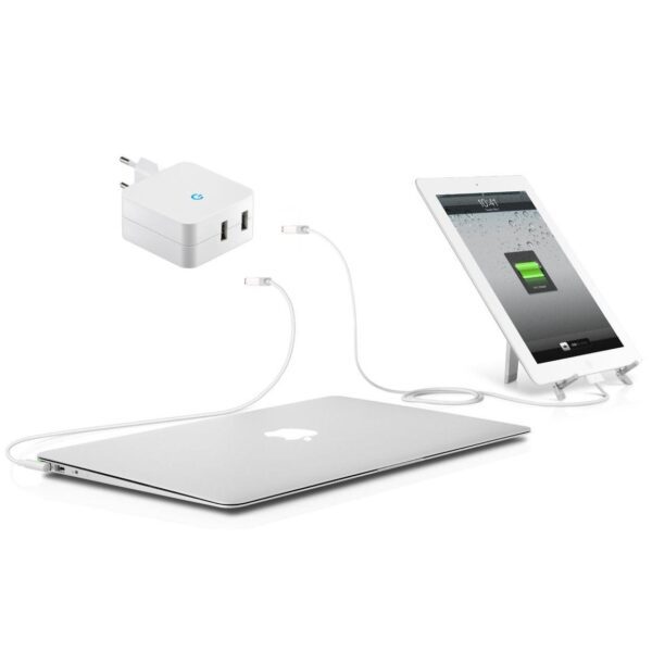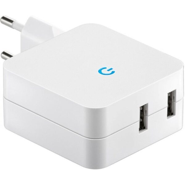 • Alimentatore 4,2A da rete italiana (2 x max 2,1A)• Caricabatterie con due prese USB e spina italiana• Pratico, funzionale e compatto, è perfetto in viaggio• Ideale per la ricarica di due dispositivi contemporaneamente• Utile per collegare iPad, iPod, Smartphone e Tablet• Compatibile con smartphone e la maggior parte dei dispositivi USB• Le dimensioni ridotte ne facilitano il trasportoSpecifiche tecniche• Tensione in ingresso: 100-240V AC 50/60 Hz• Tensione di uscita: 2 x 5 V DC • Corrente in ingresso: 0,5 A• Corrente di uscita: max. 2 x 2.100mA o 1 x 4.200mA• Connessioni: 1x spina EU; 2x USB A F• Versione stabilizzata• Dimensioni: 98 x 61 x 31 mm• Colore bianco Protezioni• Corto circuito• Sovraccarico• Sovracorrente• Sovratensione• SurriscaldamentoCertificazioni• CE• RAEEContenuto della confezione• Alimentatore da muro con due prese USB
