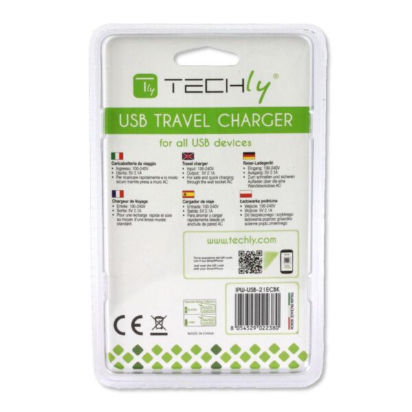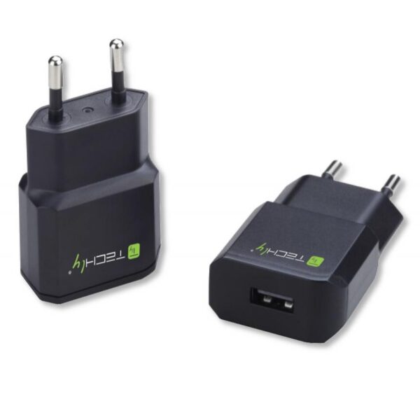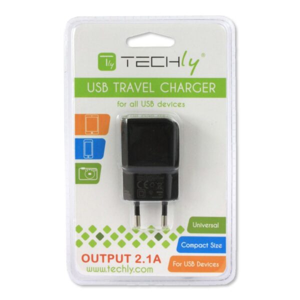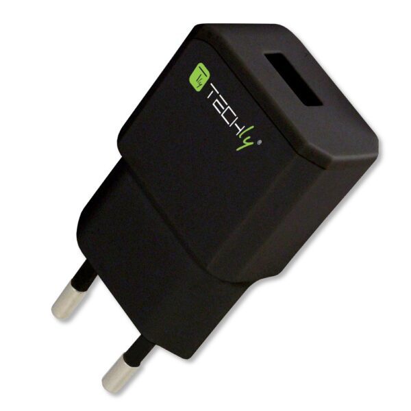 Caricabatterie USB compatto, pratico e molto efficiente. per ricaricare dispositivi mobili come smartphone, tablet, navigatori, PDA, lettori MP3 e molto altro.Grazie alle sue dimensioni ridotte e al peso ultra leggero, è comodissimo da portare con sé ovunque si vada.Garantisce la massima sicurezza con protezione contro il sovraccarico, sovratensione, corto circuito e surriscaldamento.Specifiche tecniche• Alimentazione: 100-240 V, 50-60 Hz• Tensione di uscita: 5V• Corrente di uscita: 2,1A• Numero di porte USB di uscita: 1• Corrente in ingresso: 450mA (rms) max @ 90V AC• Consumo in stand-by: 0.075W max• Classe energetica: VI Caratteristiche ambientali• Temperatura operativa: -5 / 45 °C• Temperatura di stoccaggio: -20 / 70 °C• Umidità: 35% – 85% RHDimensioni• Larghezza 37,3 mm• Altezza 67 mm• Profondità 20 mmCertificazioni• CE • FCC• RAEEContenuto della confezione• Alimentatore 1 porta USB nero• Manuale utente