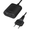 Caricatore USB compatto, dotato di cavo extra lungo; consente di caricare due dispositivi contemporaneamente da punti difficili da raggiungere (prese a muro sotto i tavoli o nascoste dietro il divano).