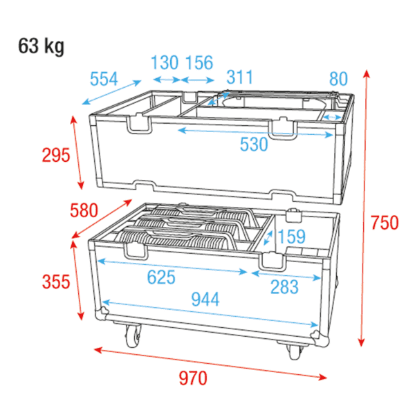 Questa robusta flight case Infinity per 3x Raccoon S420/4 e W40/4 è progettata per contenere tre apparecchi Infinity Raccoon S420/4 e W40/4 e i relativi accessori. Gli apparecchi sono collocati nella parte inferiore, dove si trovano anche uno scomparto per gli accessori e un piccolo scomparto per i diffusori. Una volta posizionati i dispositivi, la sezione centrale può essere posizionata per contenere altri accessori. Il coperchio è stato progettato per adattarsi anche alla parte inferiore, quindi la sezione centrale degli accessori può essere lasciata fuori per ottenere un flight case più compatto. La spugna rigida su misura mantiene gli apparecchi sicuri e protetti durante lo stoccaggio e il trasporto, mentre gli accessori possono essere riposti in modo sicuro in una sezione separata. Grazie alle maniglie incassate e alle ruote piroettanti (con freno) è facile spostarla da A a B.