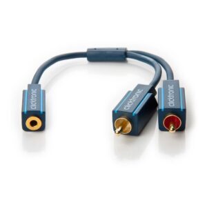 L’accoppiamento jack-RCA consente di collegare molti lettori MP3, smartphone, laptop e iPad al sistema HiFi o mini altoparlanti.Inoltre, grazie alla schermatura multipla dei segnali, ai materiali puri e alla lavorazione di qualità, garantisce un risultato eccellente. La connessione audio è configurata in modo semplice e permette di godersi la musica in due diverse stanze nello stesso momento.• Giunto Y-RCA per collegamento a sistemi / amplificatori HiFi;• Conduttore in rame e doppia schermatura;• Contatti placcati oro 24 carati.Specifiche tecniche connettori• Materiale connettori: ABS• Connessioni: 1x 3.5mm femmina / 2x RCA maschio• Doppia schermatura• Connessioni dorate (24 kt)• Lunghezza connettore 3.5mm: 39.8 mm• Larghezza connettore 3.5mm: 14 mm• Altezza connettore 3.5mm: 14 mm• Lunghezza connettore: 39.8 mm• Larghezza connettore: 14 mm• Altezza connettore: 14 mmSpecifiche tecniche cavo• Cavo rotondo• AWG 23• Diametro guaina cavo: 3.9 mm• Materiale conduttore interno OFC (rame al 99,9% privo di ossigeno)• Conduttore interno, diametro del nucleo 0,12• Lunghezza del cavo: 0,1 m• Doppia schermaturaCaratteristiche ambientali• Temperatura di esercizio da -10 °C• Temperatura di esercizio fino a 80 °C