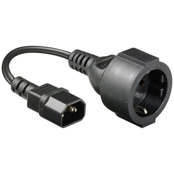 • Cavo di alimentazione da connettore VDE IEC 320 C14 maschio a Schuko femmina • Tensione nominale 250 V• Corrente nominale 10/16 A• Specifiche del cavo H05VV-F 3G1,0mm²• Lunghezza cavo: 23 cm• Colore: nero
