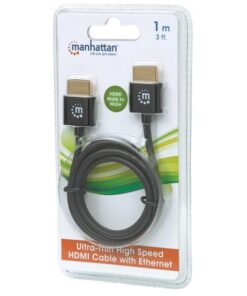 • Cavo flessibile ultrasottile/Redmere; consente una più facile manipolazione e la gestione di cavi standard• Attivo, il segnale direzionale assicura una riproduzione accurata di alta definizione audio e video attraverso il cavo ultra-sottile su lunghe distanze• Supporta HDMI con Ethernet, Audio Return Channel, video 3D, Display 4K@60Hz e Deep Color• Supporta risoluzione video 4K UHD 4 volte 1080p; fino a risoluzione 1080p in 3D e Deep Color• Consente la trasmissione ARC audio della TV per trasmettere tramite il sistema audio; non necessita di un ulteriore cavo audio• Ethernet ad alta velocità, comunicazione bidirezionale fino a 100 Mbps• Fino a 18 Gbps di larghezza di banda a 600 MHz• Compatibile con le specifiche HDMI High Speed con Ethernet• Completamente schermato per ridurre le interferenze elettromagnetiche (EMI) e altre fonti di interferenza• Compatibile con qualsiasi dispositivo HDMI, come il Blu-ray, console di gioco, impianti stereo, PC e altro ancoraStandard e certificazioni:• UL 20276• ISO 9002Informazioni generali:• Larghezza di banda: 18 Gbps a 600 MHz• Supporta HEC• Conforme o superiore agli standard HDMI esistenti• 4.5 mConnettori:• (2) HDMI 19-pin maschio• Contatti con rivestimento dorato• Copriconnettori pressofusi in PVC• Connettore antistrappoCavo:• Cavo 34 AWG• Doppia schermatura• Indice di corrente: 0.5 A DC• Voltaggio: 300V DC• Resistenza dell’isolamento: 5 MOhms• Resistenza conduttiva: 5 Ohms• Involucro di plastica termicaContenuto della confezione:• Cavo HDMI High Speed con Ethernet ultrasottile/Redmere