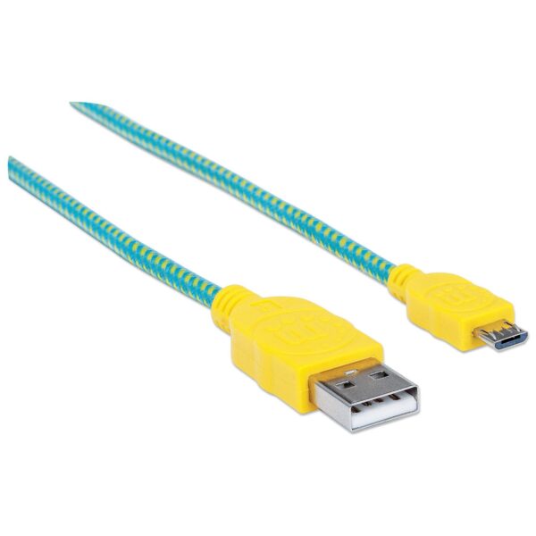 • USB 2.0 tipo A maschio a USB 2.0 Micro B maschio• Guaina intrecciata con design anti groviglio• Carica e sincronizza smartphone, tablet o altri dispositivi portatili• Supporta velocità fino a 480 Mbps• Contatti placcati in oro per una migliore prestazione• Colore: azzurro / giallo• Lunghezza: 1,8mConnettori• USB 2.0 Standard-A maschio• USB 2.0 Micro-B maschio• Struttura placcata nickel• Contatti con rivestimento dorato• Copriconnettori pressofusi in PVCCavo• Conduttori 28 AWG• Schermato• Tensione di resistenza: 300 VDC 10 ms• Resistenza dell’isolamento: 5 MOhms• Resistenza sui contatti: 10 Ω• Guaina PVCStandard e Certificazioni• UL 2725• USB 2.0Contenuto della confezione:• Cavo USB Hi-Speed con guaina intrecciata, 1.8m