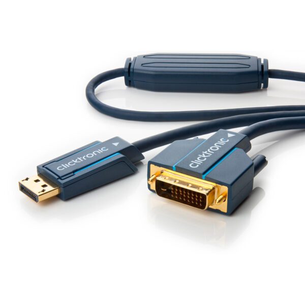 Questo cavo adattatore permette di trasmettere presentazioni e foto direttamente da notebook, Mac o PC a un monitor esterno o un proiettore. Il segnale DisplayPort è compatibile con DVI e trasmette risoluzioni fino a WQXGA con elevata profondità di colore e tassi di riproduzione di immagini super-fluenti. Il bloccaggio meccanico del connettore DisplayPort impedisce connessioni allentate. Pertanto, si può essere sicuri di ottiene ogni immagine e ogni suono esattamente come devono essere!• Blocco meccanico del connettore DisplayPort, che impedisce connessioni allentate • Conduttore in puro rame e schermatura a 2 vie per un’alta qualità del segnale • TV Full HD fino a 1080p • Contatti placcati oro 24 carati per una resistenza di trasferimento minima • Unico in direzione del segnale da DisplayPort a DVICaratteristiche• DisplayPort maschio a DVI-D maschio• Tipo cavo: tondo• AWG: 26• Tipo schermatura: doppia• 1^ schermatura: lamina di alluminio• 2^ schermatura: treccia di rame 160 fili• Lunghezza: 2 m• Colore: bluConnessioni• 1x DisplayPort 20 pin maschio• 1x DVI-D 24+1 maschioContenuto della confezione• Cavo monitor ICOC CLC-DSP-020
