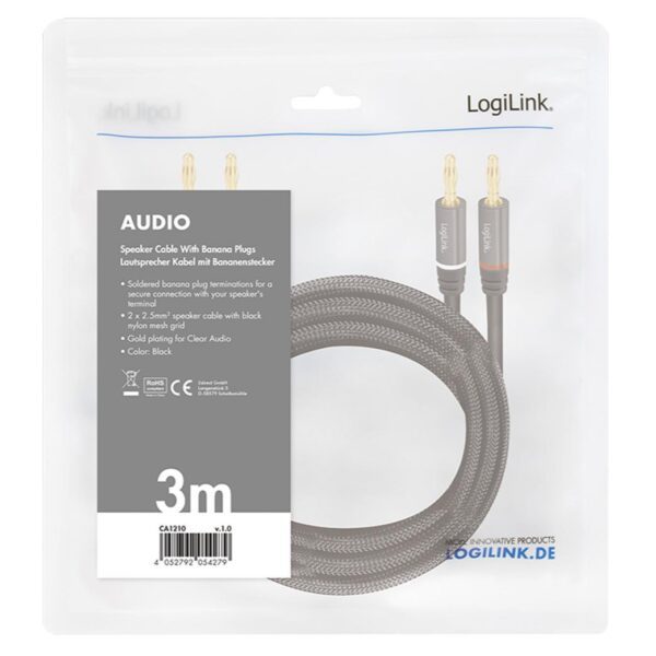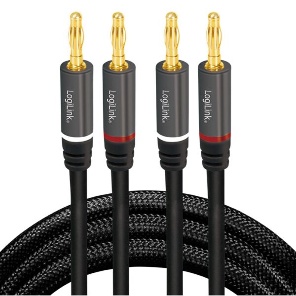 Cavo per Altoparlanti 2×2 Spinotti a Banana Nylon Nero 5m